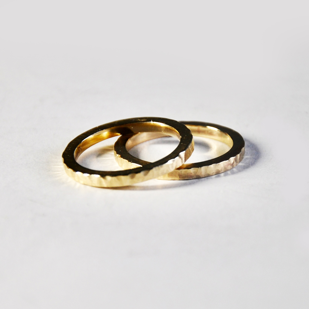 3 unloved gold rings, donated by family, in different caratage. Melted down together and turned into wire. 3 brand new granulated rings, made to order.
